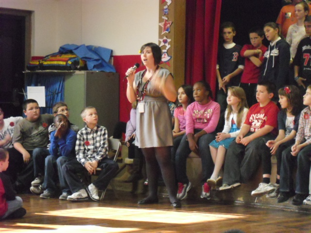 Lynn Woods School recognized Veteran’s Day with a special Veteran’s Day Assembly. Under the direction of our music teacher, Ms. Cohen the 4th and 5th grade students prepared some patriotic songs for the school. Students in Grades 2 and 3 recited poetry from memory. The gym was decorated with lovely patriotic artwork. Students in Grades 2 and 3 also created poppies that were distributed at our assembly. The LEHS ROTC presented colors and performed a routine. It is clear why they have won so many awards. Thank you LEHS ROTC! PS…..the poppies were made from recycled products from the new Lynn Business EXCL.